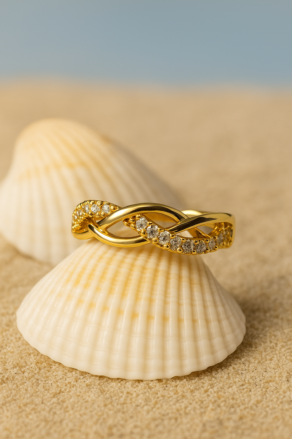 The Celeste Wave Adjustable Ring captures golden hour in a twist of crystal-kissed curves. A fine blend of glam and grace β perfect for stacking or solo wear.