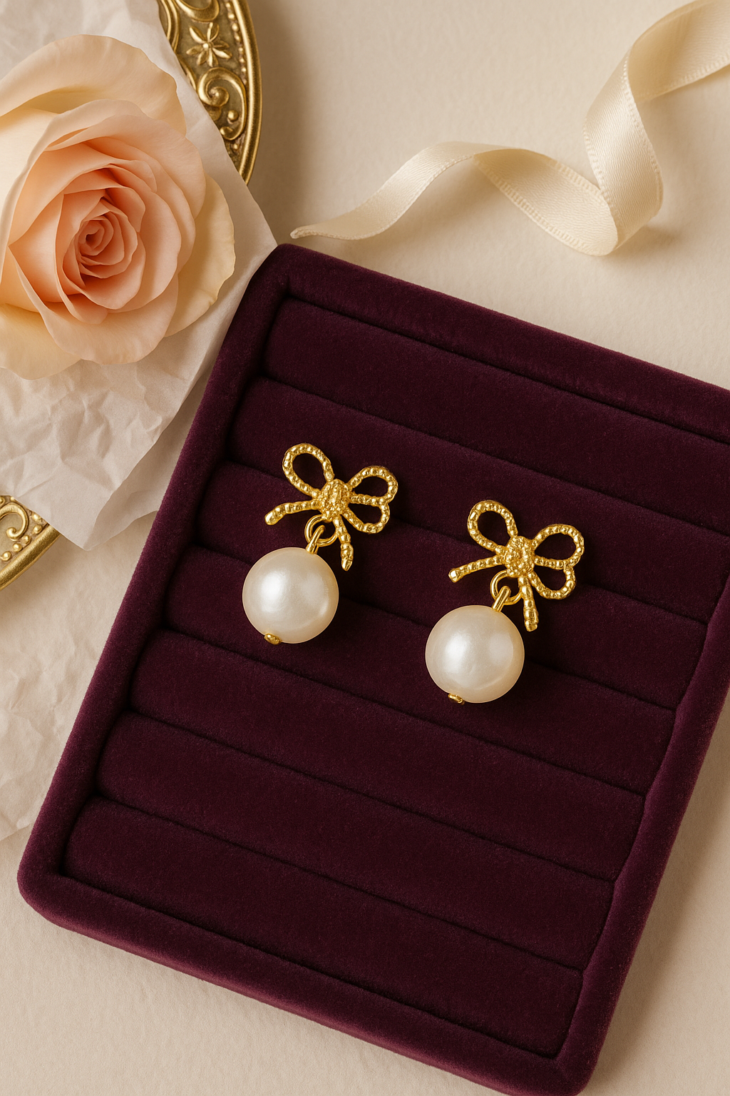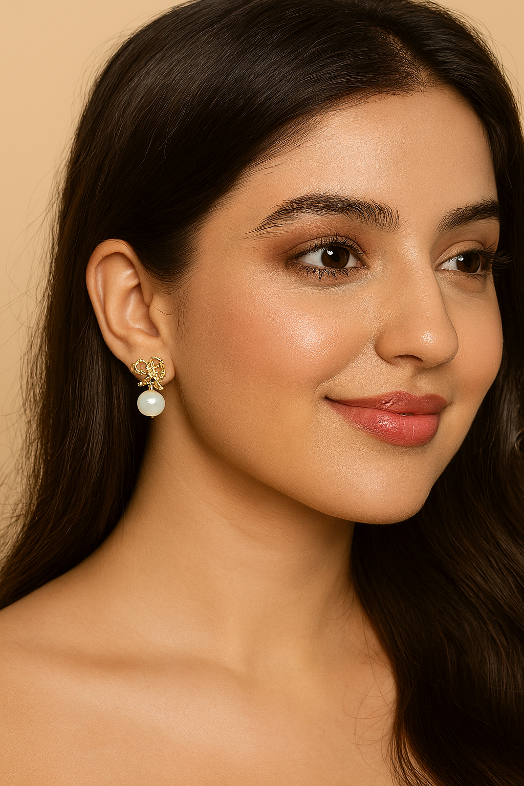 Classic meets cute in the Lush Pearl Bow Studs β a statement anti-tarnish pair from Shaira perfect for gifting, glam, and celebrations.