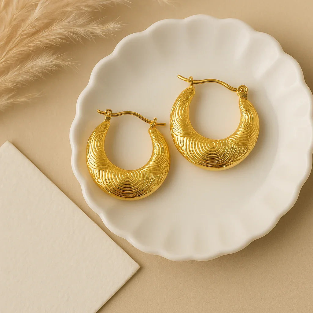 Discover the elegance of Solis Luxe Hoops — a premium anti-tarnish gold pair designed to elevate your everyday. These hoops blend a sculpted, sun-kissed texture with a sleek, statement silhouette. Lightweight and versatile, they move effortlessly from desk to dinner.